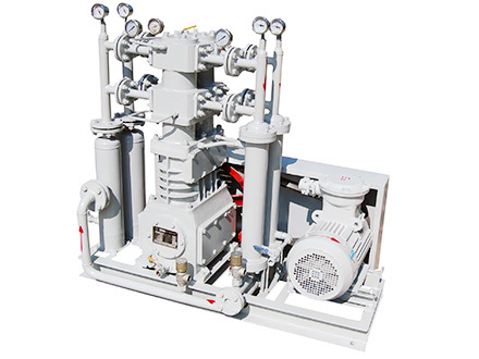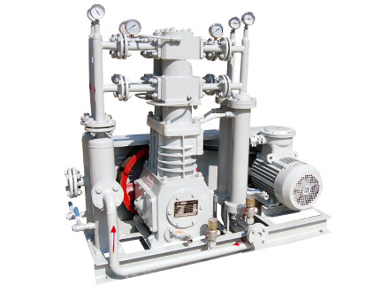 天然氣壓縮機是我公司自主研發(fā)的新型產品,往復活塞式結構 。該機集壓縮機、冷卻器、電機、冷卻系統(tǒng)、共用底架等為一體。減少了占地面積,節(jié)省投資 ,方便操作,可為用戶最大限度的創(chuàng)造經濟效益。該產品氣缸 、填料部件為無油潤滑,保證了其工作介質的純度。曲軸、連桿、十字頭部件為壓力潤滑,以保證潤滑的可靠性。