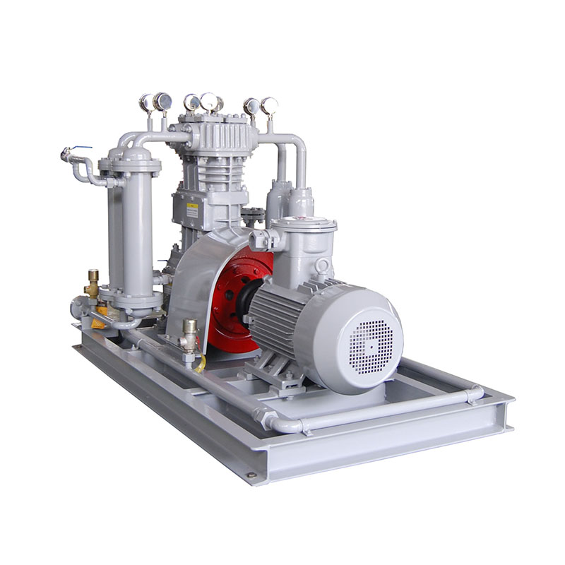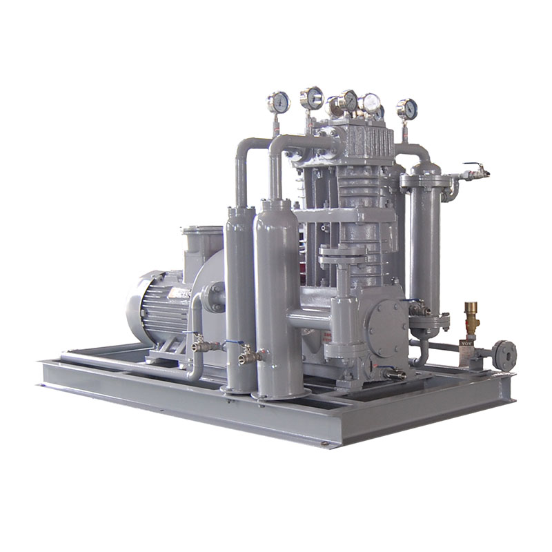乙烯壓縮機壓縮機是我公司新型產品,它集壓縮機、氣液分離器、安全閥冷卻器、電動機等為一體,成一完整的機組。具有功能多、體積小、重量輕、功率小、運行平穩(wěn)可靠等特點,并有良好的安全性能。它為輸送氫氣,可為用戶最大限度地創(chuàng)造經(jīng)濟效益。由于采用獨特的無油潤滑設計,氣缸內無需用油潤滑,因而不會對介質造成污染,使被輸送物質保持純凈。本機設計成機組型式,許多管線上的附件都安裝在機組上,省卻了氣液分離器、穩(wěn)壓罐、安全閥、進氣過濾器等,減小了機房的面積,減少了操作維護工作量,節(jié)省了投資。